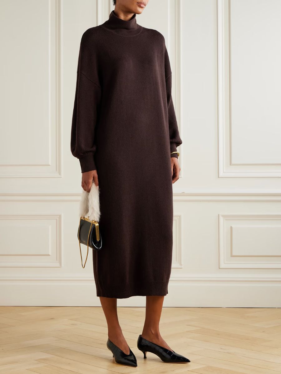 A refined knit you’ll reach for all winter. This Allude dress is crafted from a soft wool–cashmere blend and falls in an easy, column-like silhouette that feels effortlessly elegant. A cozy-meets-polished piece that works just as well with tall boots for daytime as it does with minimal heels for a simple, elevated evening look.