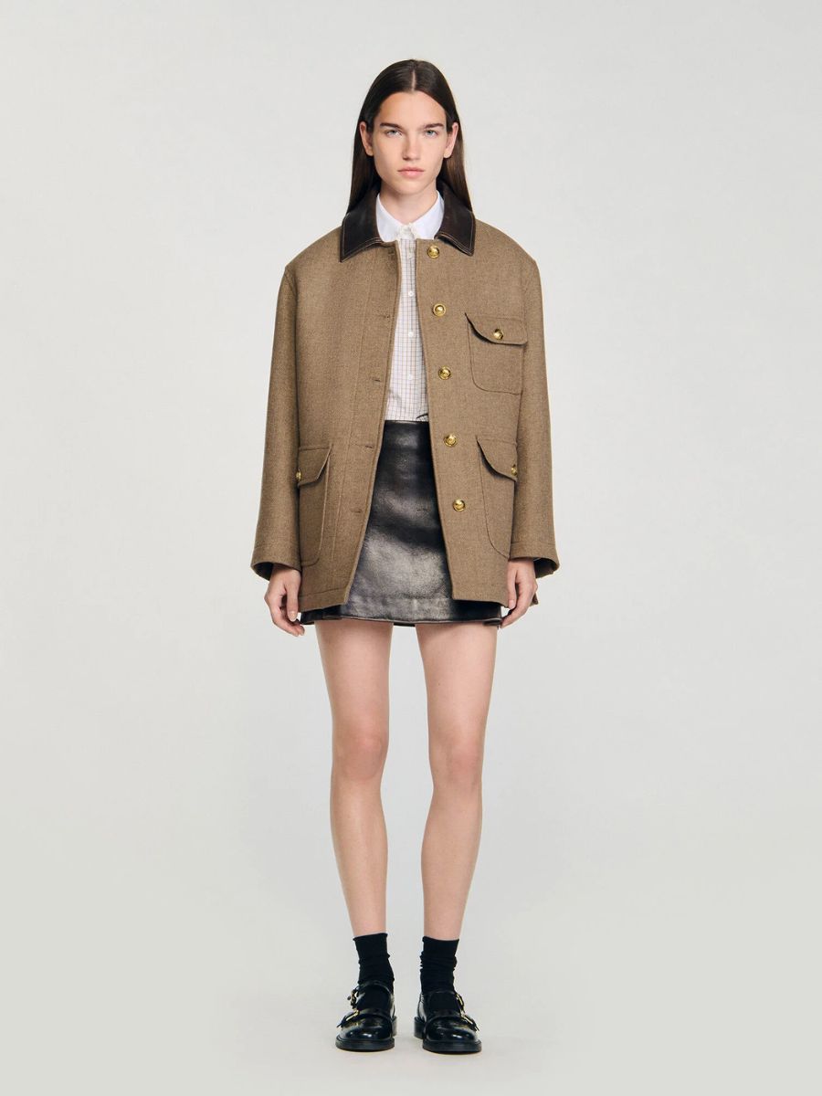 A modern classic with Parisian ease. This Sandro tweed coat brings structure and softness together in a clean, elegant silhouette. Layer it over denim and knits for daytime or wear it with tailored trousers for a more refined, city-ready look. A timeless coat designed to stay relevant season after season.